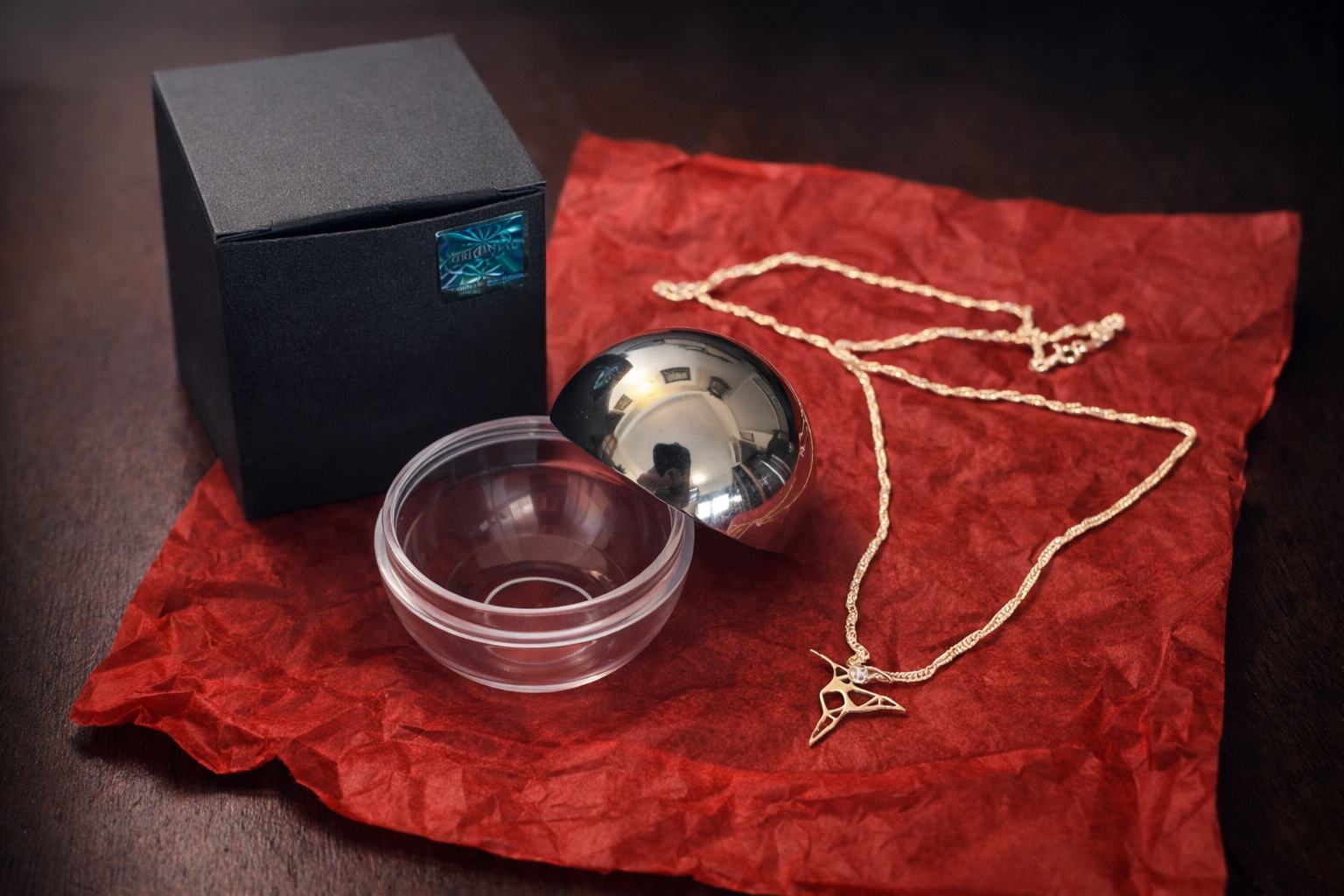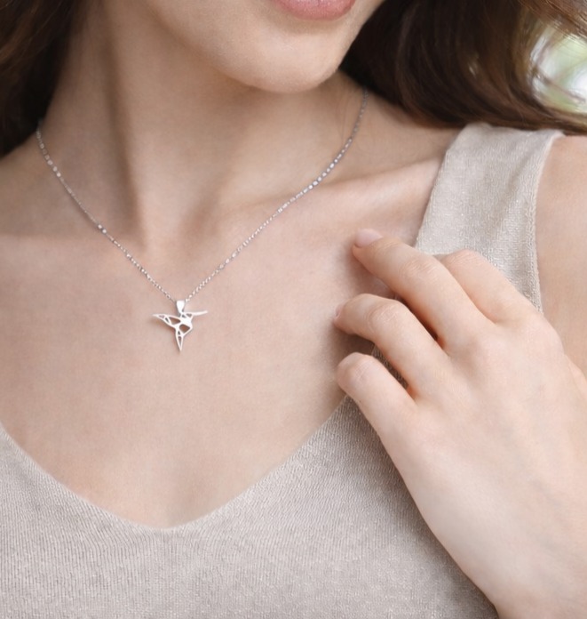 El colgante Mihi-Anima es una pieza delicada y contemporánea inspirada en el arte del origami, donde las formas geométricas se transforman en una figura ligera y orgánica que evoca movimiento y libertad.