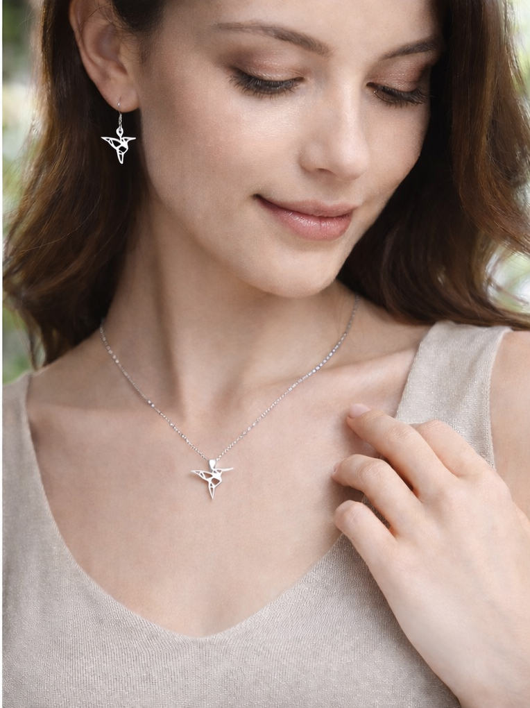 Los pendientes colibrí Essentia Aura capturan la belleza de lo sutil y la fuerza de lo ligero. Inspirados en el colibrí —símbolo de libertad, alegría y resiliencia—, su diseño calado y minimalista transmite movimiento, delicadeza y una elegancia atemporal.