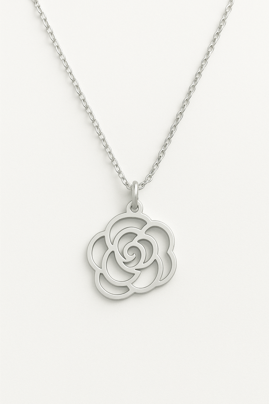 Este collar con colgante en forma de rosa es una joya elegante y atemporal, diseñada para expresar emociones auténticas. Su delicado acabado y su diseño minimalista lo convierten en el complemento perfecto para cualquier estilo y ocasión.